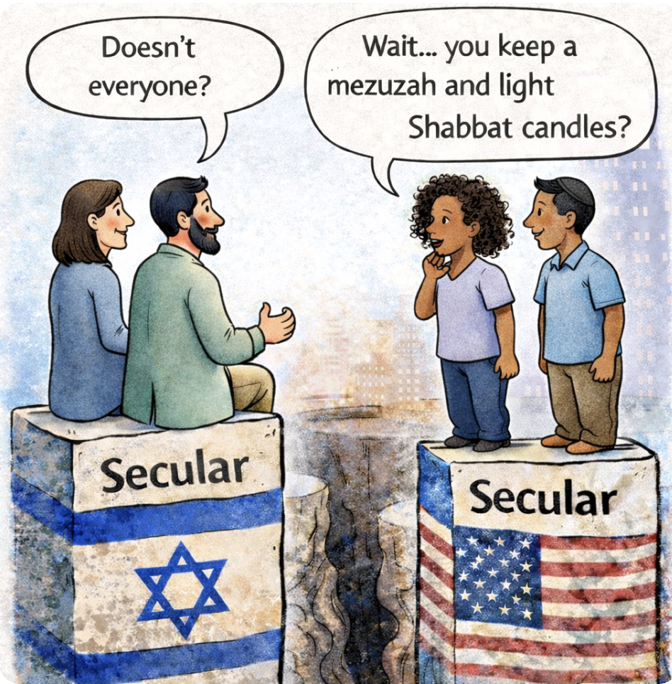 In Israel, Shabbat is not Saturday with Jewish meaning layered on top of it. It is Yom Shabbat, the day itself. The week moves toward it. Public life slows around it. Even Israelis who do not observe Shabbat ritually live inside its rhythm. In the United States, Shabbat must be consciously overlaid onto Saturday, a day already shaped by work, errands, sports, and social obligations. Observance requires opting in.