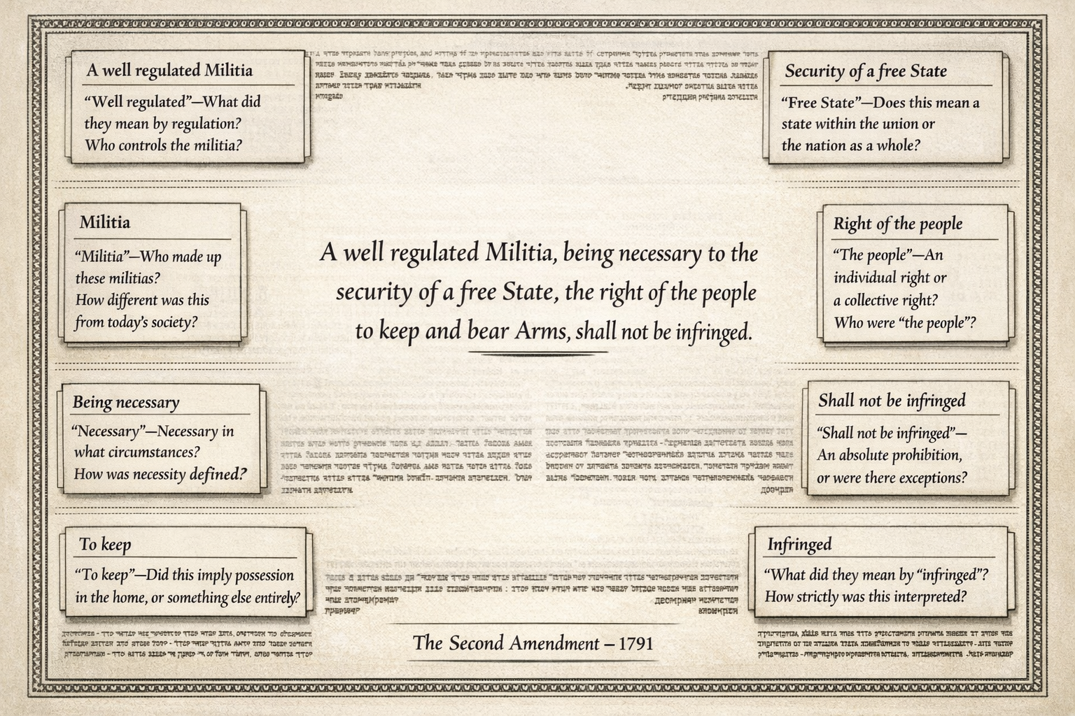 After we have an open, often emotional, sharing session, I ask learners to engage in a different kind of “text” study: one with the Second Amendment. I treated the Second Amendment the way I would treat a Jewish text. Slowly. Carefully. Examining each word with attention to language, context, and interpretive responsibility. The debate is not whether the Second Amendment allows civilian gun ownership. It clearly does. The deeper question is how Americans interpret it, what weight we assign to its words, and what moral claims we attach to it.