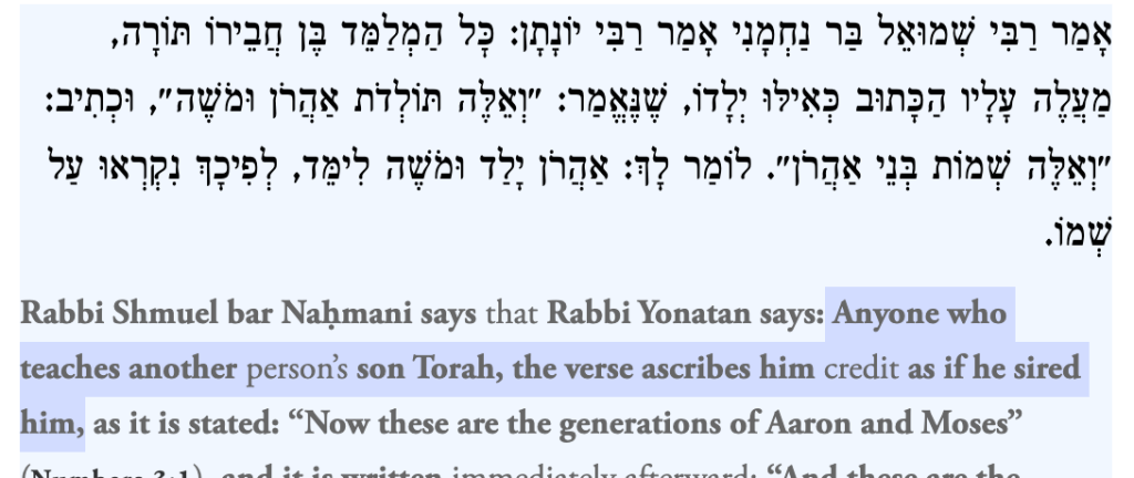 Jewish tradition offers a different lens. In Sanhedrin 19b, the Talmud teaches that one who teaches or raises a child is regarded as if they had given birth to them. Our tradition recognizes caregiving, guidance, and presence as forms of parenthood.