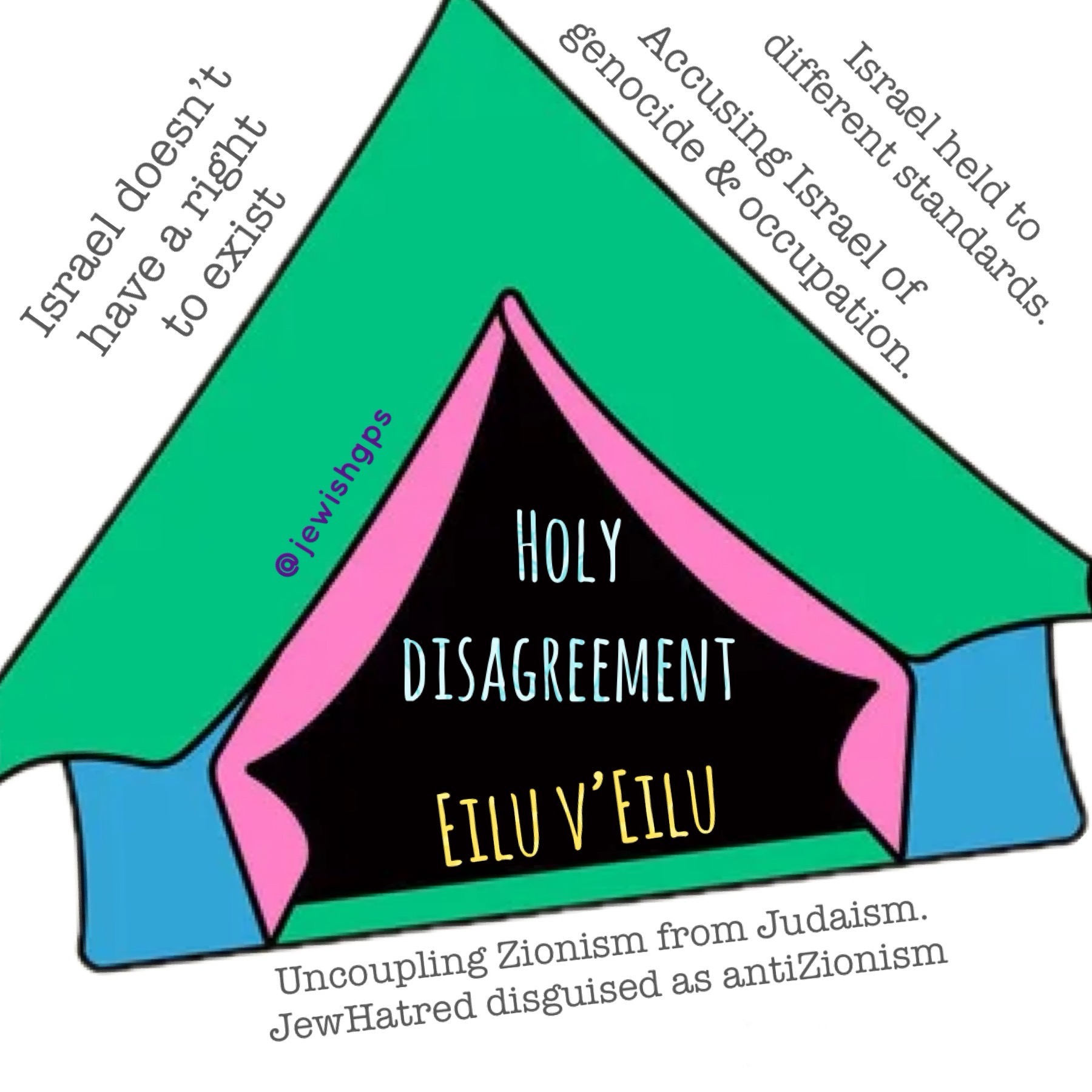 When it comes to talking about Israel or exploring concepts related to conflicts Israel is embroiled in, my tent is super wide and open for a lot of holy disagreement, but there are still basic ill -conceived concepts that fall outside of what I can deem holy and as acceptable dissent. This graphic displays some of the most polarizing ones: