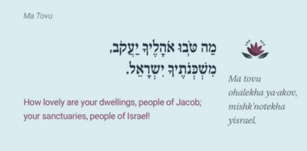 from “Siddur for Youth” by Cantor Azi Schwartz. Ohalechka is often translated into “Tents” and Yaacov/Jacob’s other name was Yisrael. Jews are known as B’nai Yisrael – meaning the descendants of Jacob and